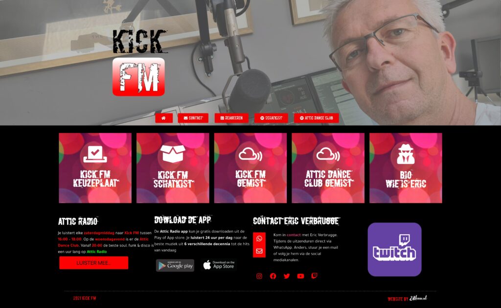 Een complete website update voor Kick FM (kickfm.nl) is het radio programma van Eric Verbrugge iedere zaterdag tussen 16:00 – 18:00 op Attic Radio.