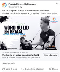 Facebook Promotie voor Fysio-Fitness Middenmeer